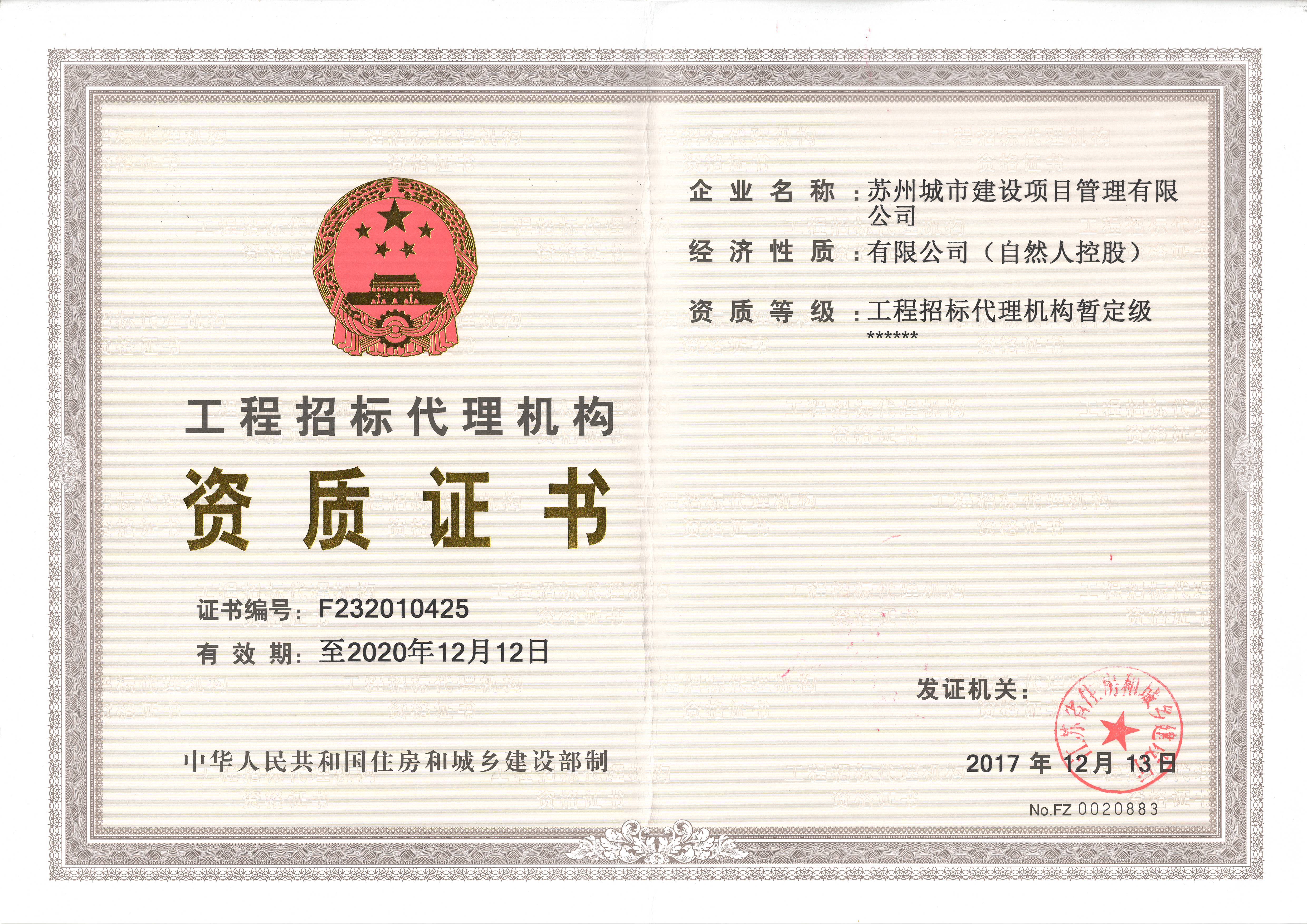 招標(biāo)代理資質(zhì)證書