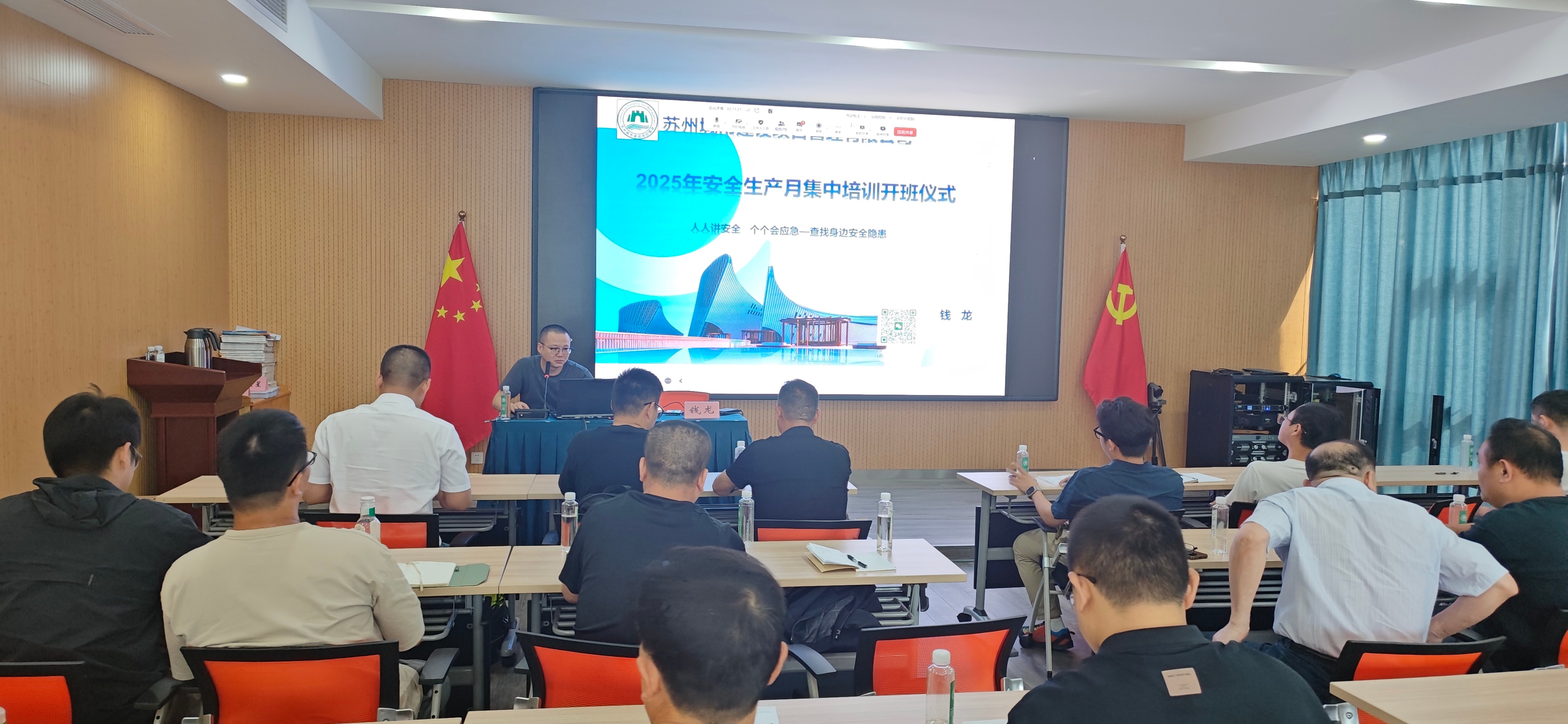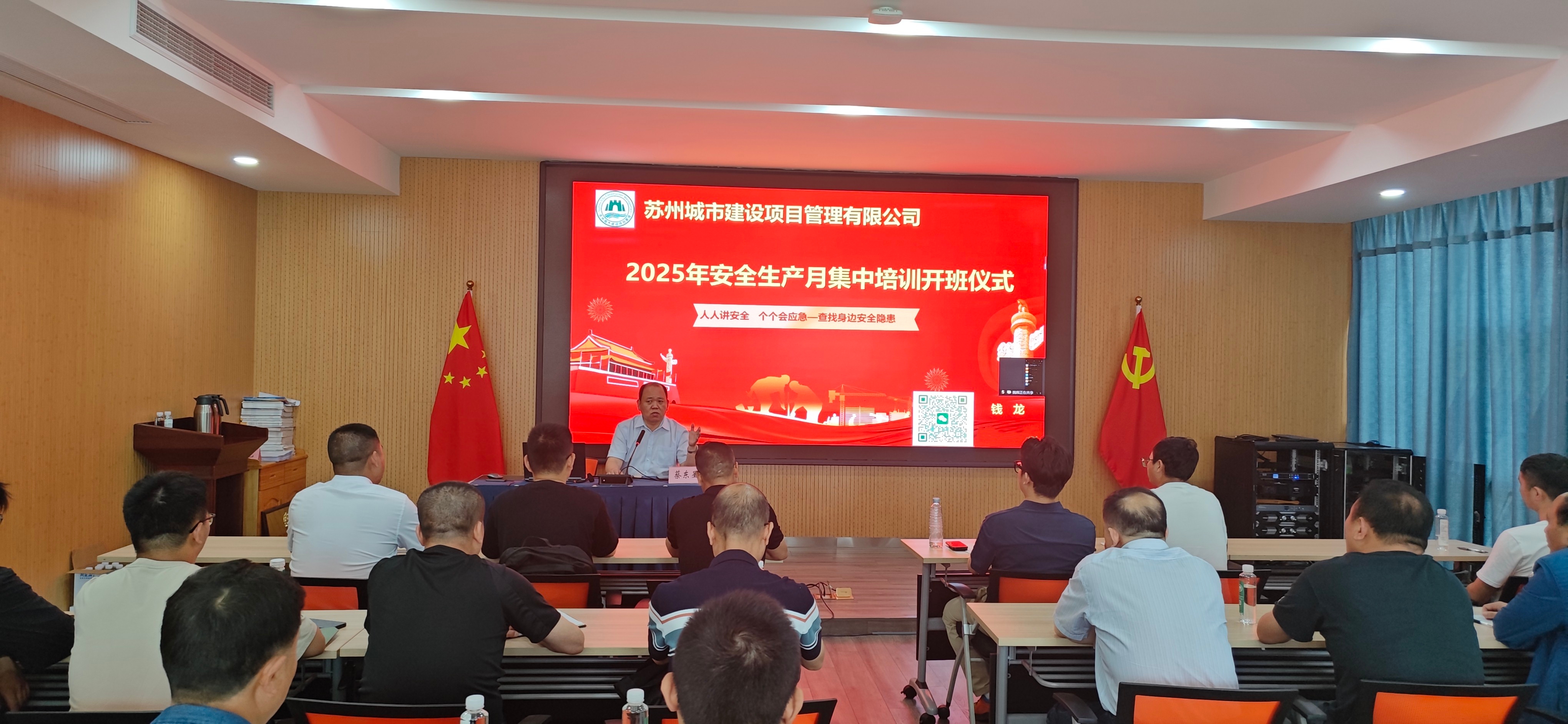 為深入貫徹落實2025年全國安全生產月“人人講安全 個個會應急——查找身邊安全隱患”主題要求,全面提升監理人員對安全生產相關政策標準的掌握水平、風險隱患辨識能力,及時消除事故隱患。蘇州城市建設項目管理有限公司于2025年6月4日在公司大會議室舉辦建設工程安全專題培訓,本次會議采取線上+線下形式雙開展,公司管理層、項目總監、專業監理工程師及安全監理人員等核心骨干力量積極參與,共同接受了一次深刻的安全責任洗禮與專業技能提升。會議由公司總工程師錢龍主持開展。